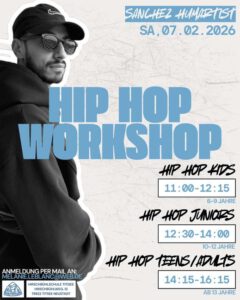 ❗️WORKSHOP TIME❗️Am Samstag, den 7. Februar 2026, findet ein Hip Hop Workshop mit Sanchez Humartist statt.